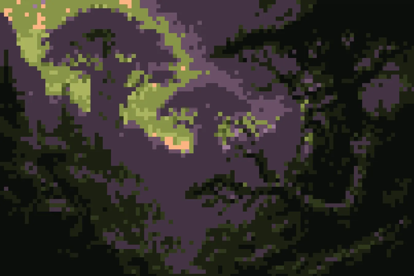 Warm light gleams against your helmet’s crest. You drag yourself from the black, knotted hole in the tree canopy.