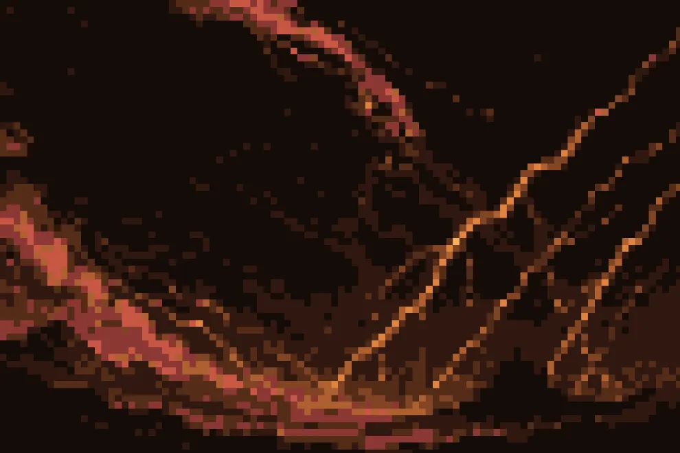 Patchwork screams in a thousand tongues. He descends like a burning blimp. Writhing, deflating on the ground, flapping as his smoke streams from his discharging body-balloon; his voices vanish, one by one.