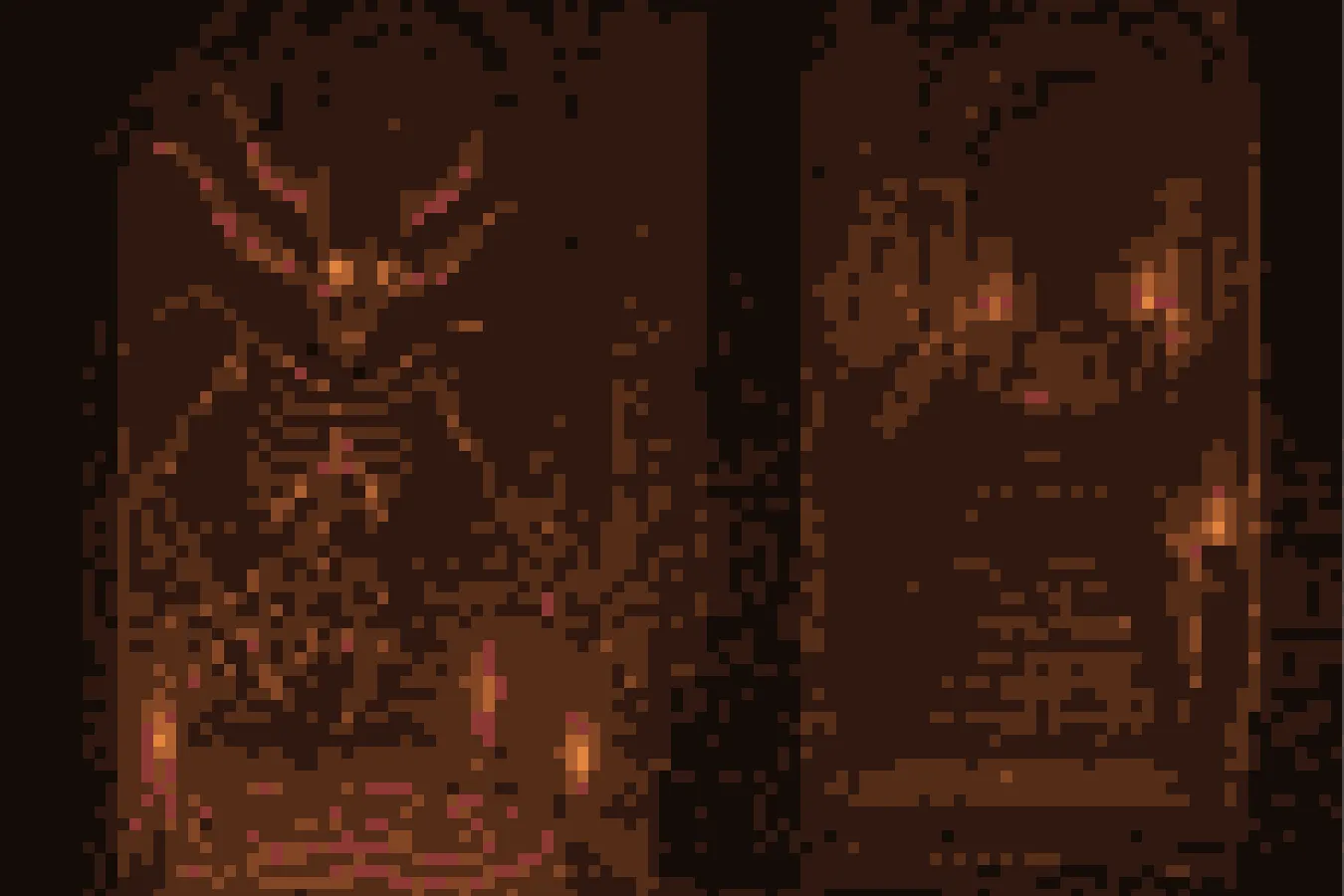 You must act fast to survive this next attack. As you reach for your weapon something rams into your pauldron. You’ll crash against the floor. Whatever it is continues its momentum. It hits the display where The Late Poet stands. There is a thunder crash of metal and chocolate. The silver dishes send reflections of the candles spinning around the chamber, dazzling your eyes.