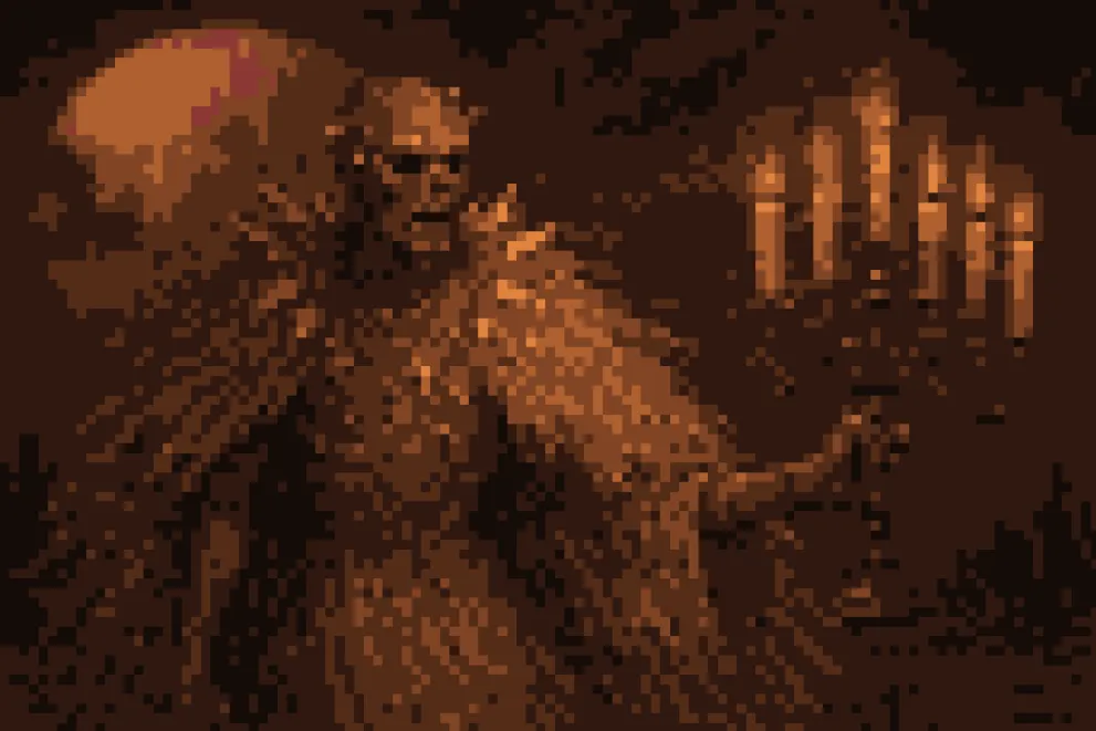 After many minutes your striker finally conjures a small flame from a candle wick. You scan the room. Bonbons lie everywhere. Mixed with them are The Late Poet’s scattered bones.