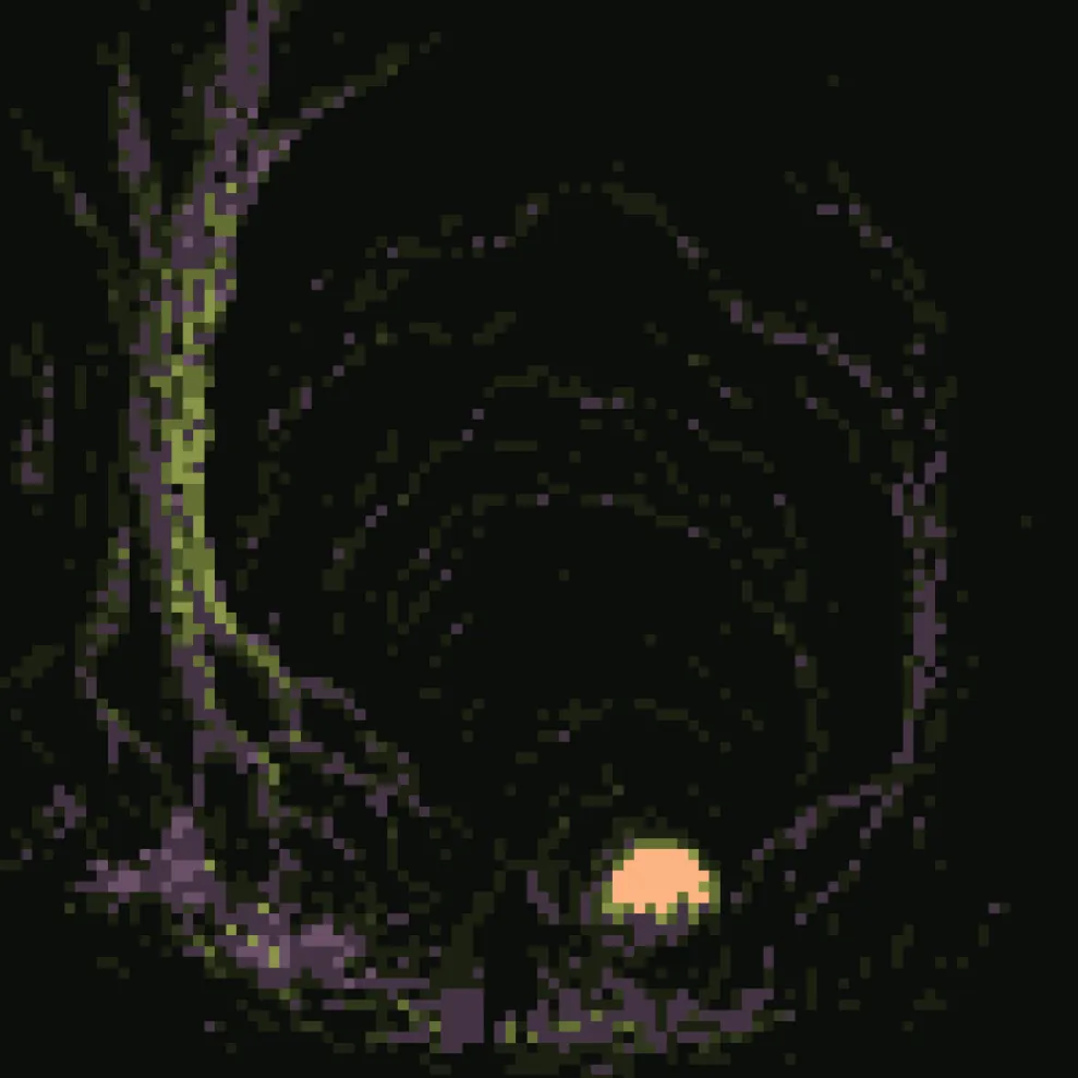 The light fades. Its silence is deafening on your eyes. You make quiet strides over a sward of sponge moss. Bending, you peer into the log cavity. Nothing. You crouch just inside, then stand. The log is bigger inside than outside. You turn to wave your Lady.